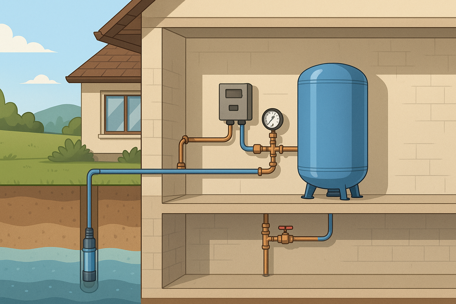 Voda se nasává ponorným nebo povrchovým čerpadlem ze studny, vrtu či nádrže.